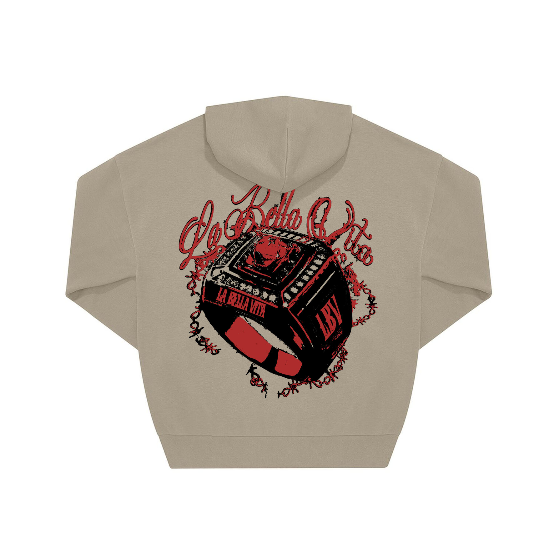 80% cotone 20% poliestere riciclato. Felpa con cappuccio a mantellina, spalle scese e taglio oversize, gender-neutral, tessuto PST, felpata internamente.